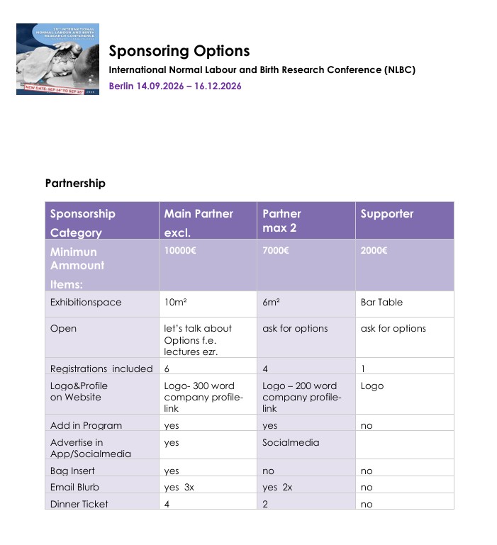 Become a Sponsor or Exhibitor at the 25th International Normal Labour and Birth Research Conference